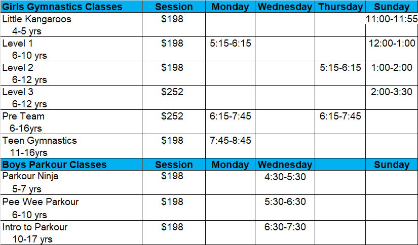 **TRIAL CLASS - you have the option of signing up for a trial class before committing to the full session. There is a $28 charge for the trial class and spots maybe taken as trial enrollments do not hold a spot in the class. To do so: please click below, create an account, fill out waivers, add the child to your account and text the business number with class and date for us to go in the system to create a trial class.